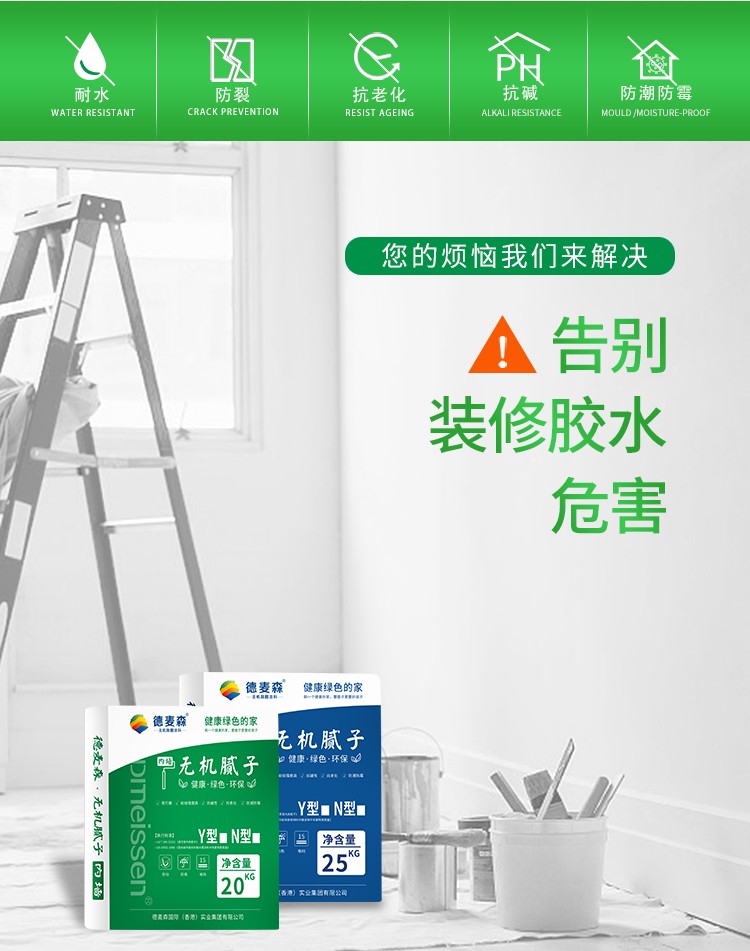 德麦森无机内墙腻子,不加胶水,净味无害
