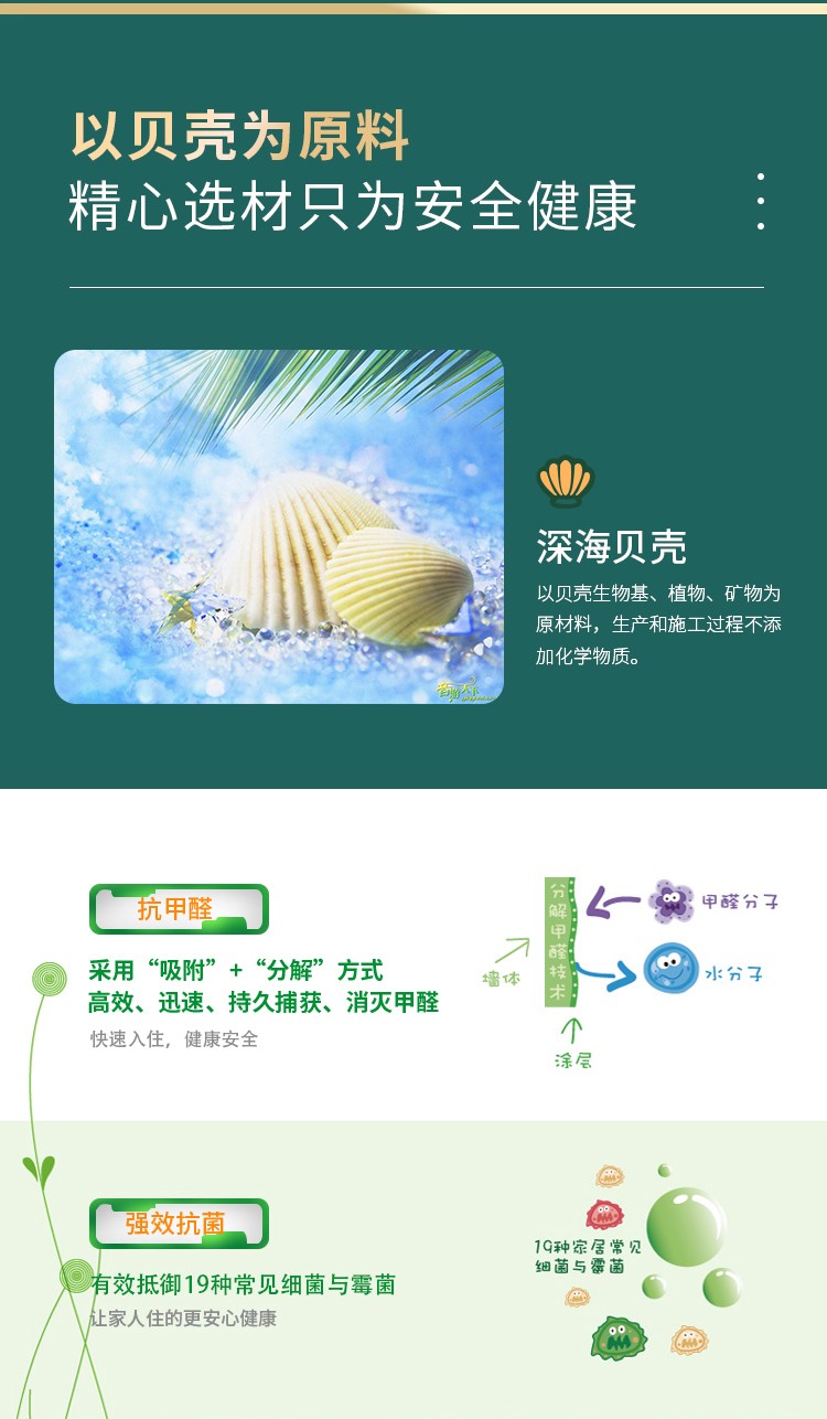 由天然贝壳、植物高温萃取的干粉涂料