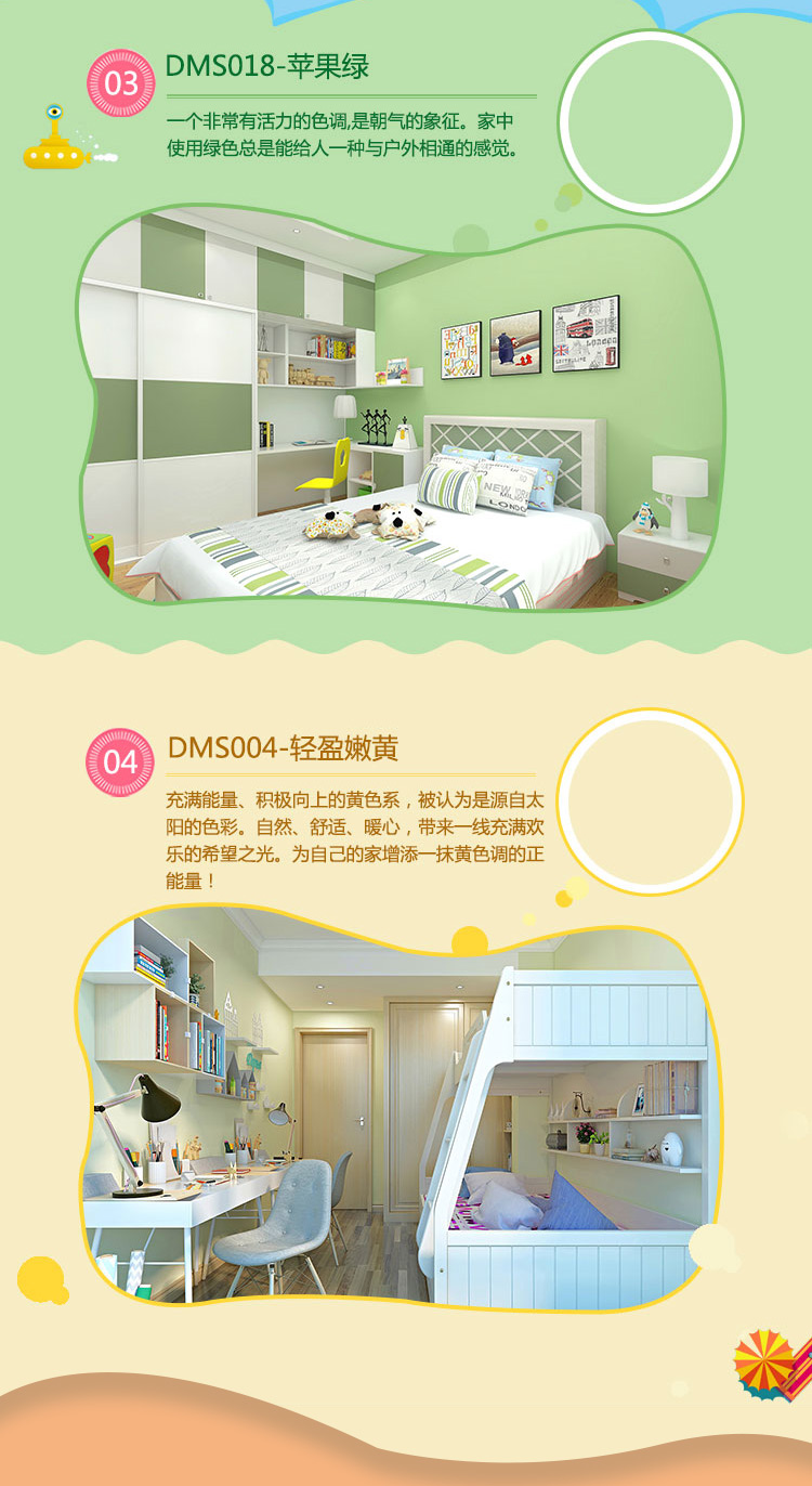 4色选择:DMS020-蔚蓝海风/DMS018-苹果绿/DMS004-轻盈嫩黄/DMS010-柔和粉嫩