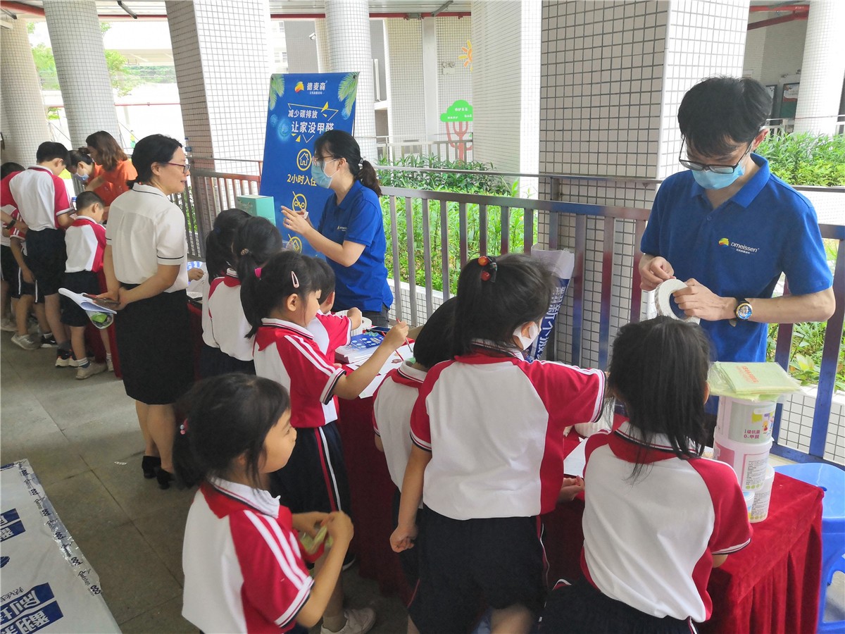 2020年6月5日下午,为提高学生环保素养,营造爱环境,保护环境,了解绿色生态,德麦森无机除醛涂料走进了广州玉山学校。此次科普活动旨在为了引导小朋友们对大自然产生兴趣,发挥未成年人在家庭和社区科普宣传中一个独特影响作用。让孩子在玩中学知识,体验一只贝壳改变亿万家庭的居住健康。