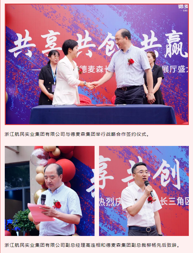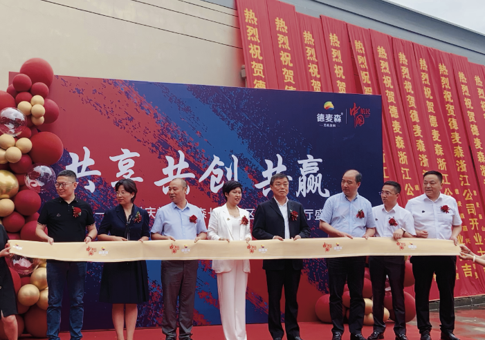 浙江航民实业集团有限公司董事长朱重庆、德麦森集团总裁杨丽等两家企业负责人出席签约仪式并为新公司开业剪彩,共同见证这一最难忘时刻。