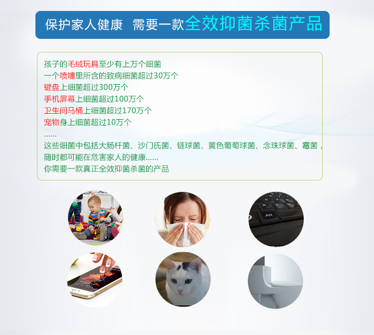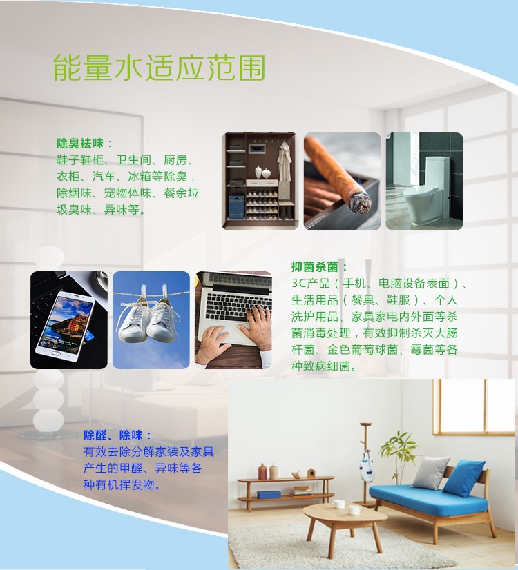 抑菌杀菌:3C产品(手机、电脑设备)、生活用品(餐具、鞋服)、个人洗护用品、家电内外面等杀菌消毒处理,有效抑制杀灭大肠杆菌、金色葡萄球菌、霉菌等各种致病细菌。